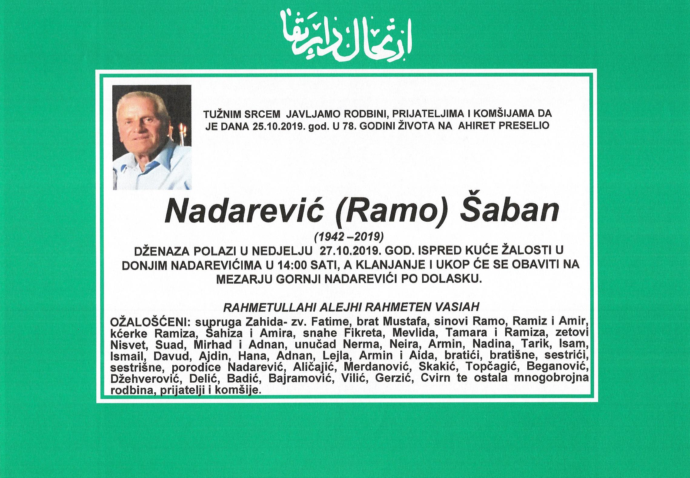 Dana 25.10.2019.g. u 78.-oj godini života je preselio na Ahiret preselio Nadarević (Ramo) Šaban,