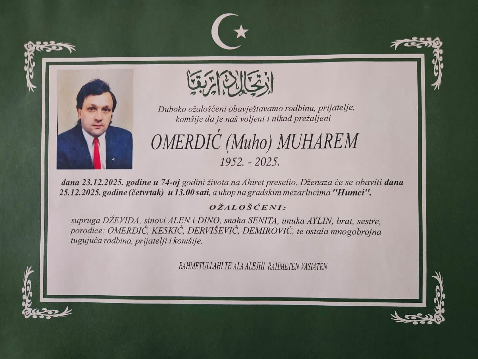 dana 23.12.2025. godine, u 74. godini života, na Ahiret preselio. Dženaza će se obaviti dana 25.12.2025. godine (četvrtak) u 13.00 sati, a ukop na gradskim mezarlucima „Humci“.