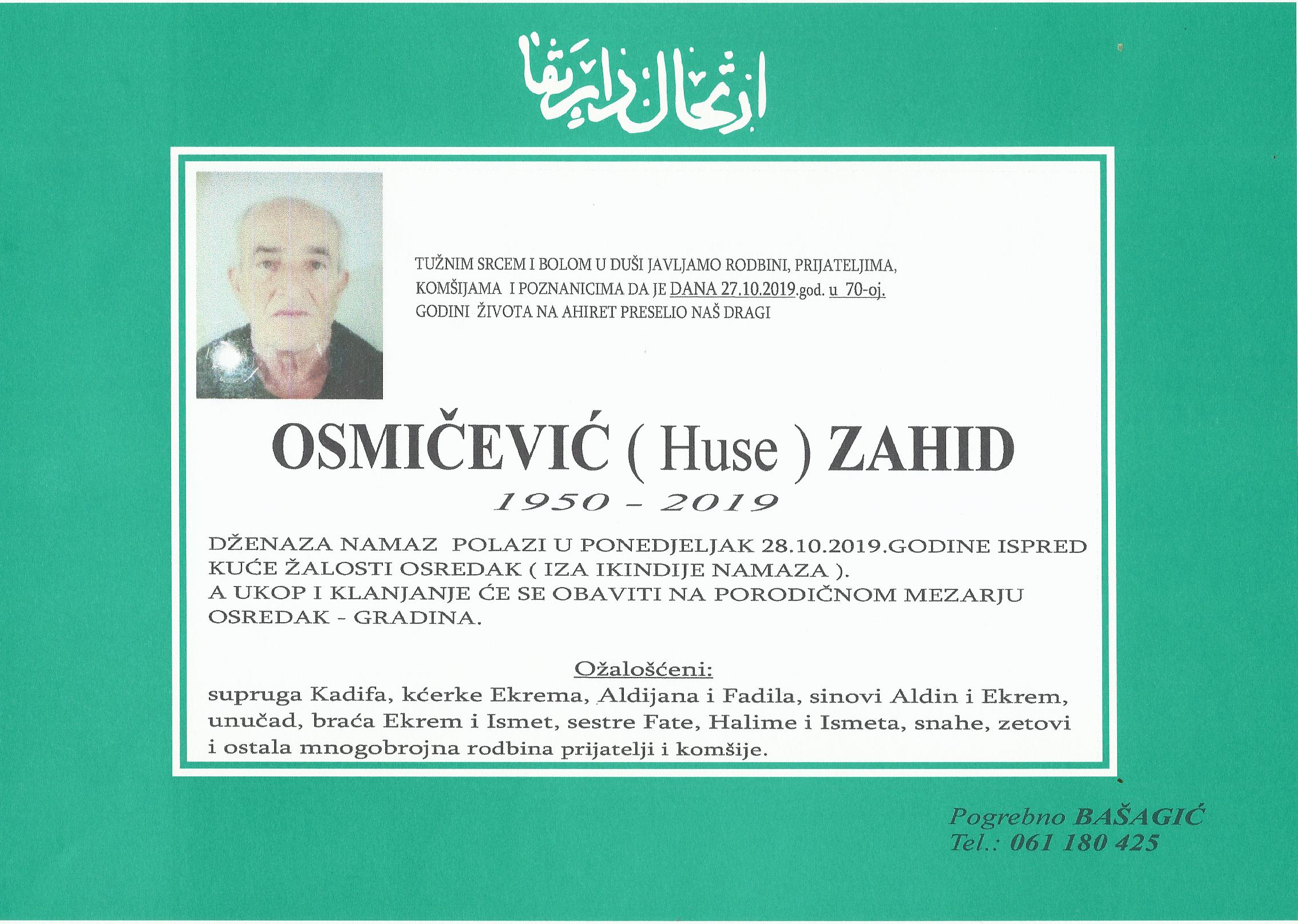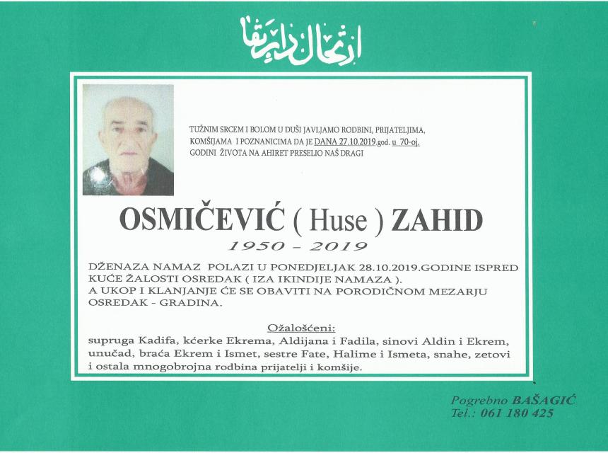Dženaza namaz polazi u ponedeljak 28.10.2019.g. ispred kuće žalosti - Osredak, iza ikindije namaza,a obavit će se na poradičnom mezarju Osredak- Gradina.