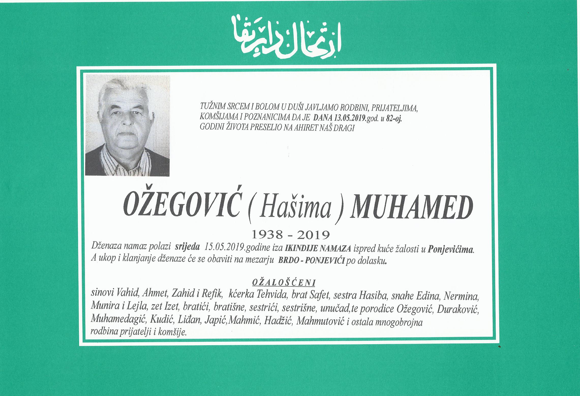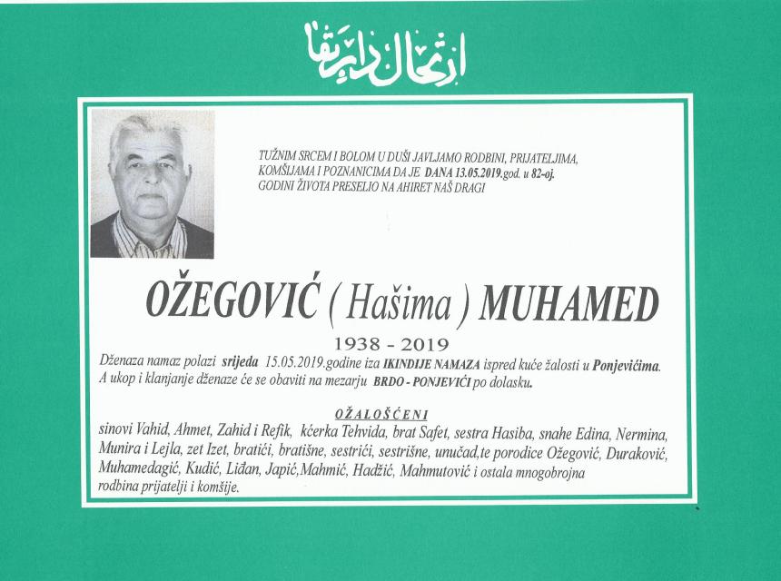 Dana 13.05.2019. godine u 82.-oj godini života preselio je na Ahiret Ožegović (Hašima) Muhamed.