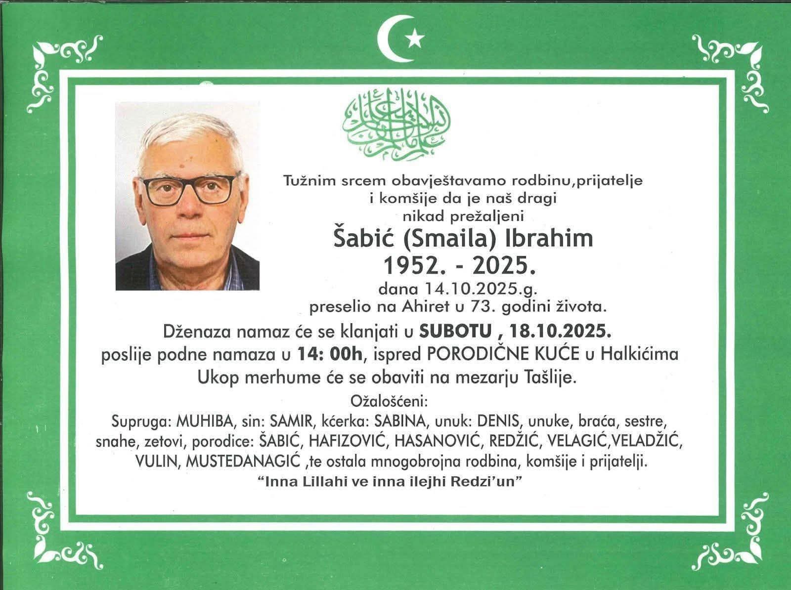 Dženaza namaz će se klanjati u SUBOTU, 18.10.2025.
