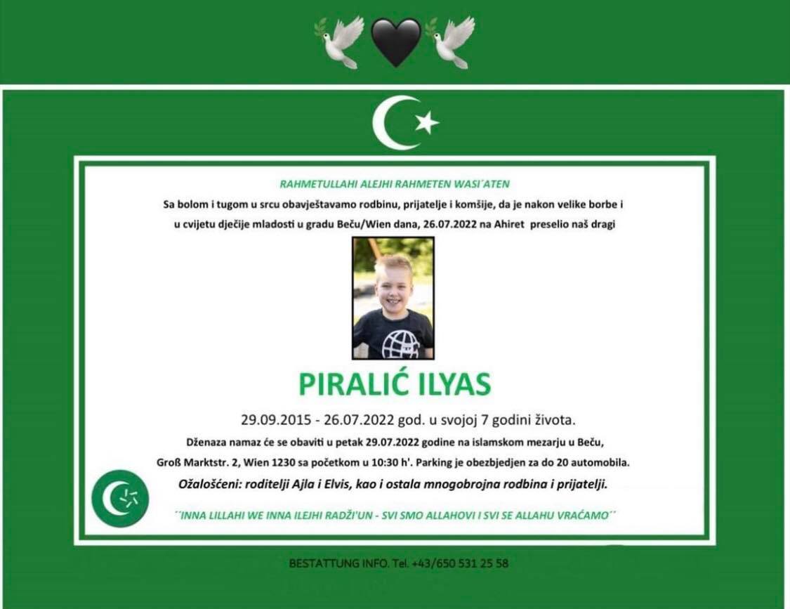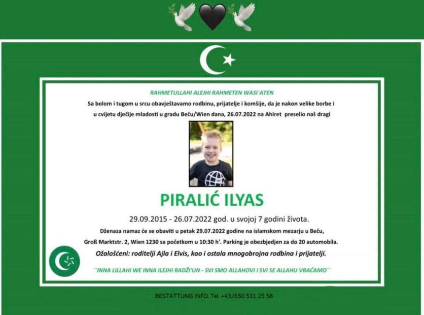 Dženaza namaz će se obaviti u petak, 29.07.2022. godine na islamskom mezarju u Beču, Groß Marktstr. 2, Wien 1230 s početkom u 10:30h.