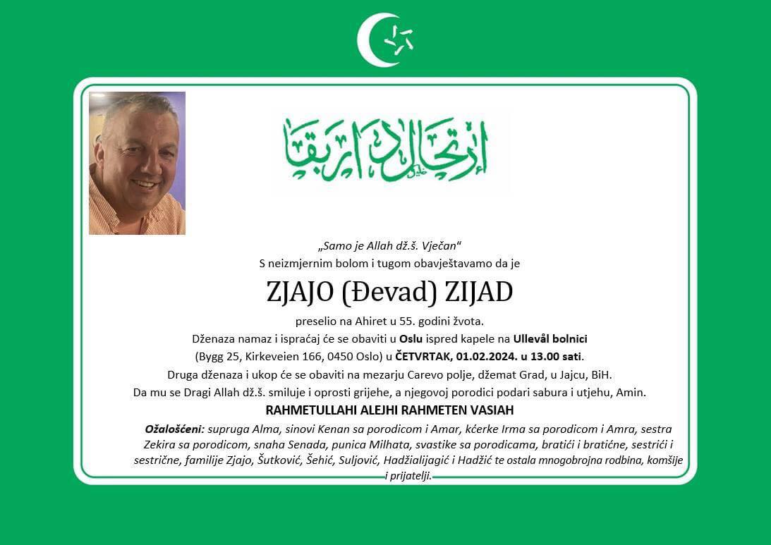 Obavještavamo rodbinu, prijatelje i poznanike da je u 55. godini na Ahiret preselio Zjajo (Đevad) Zijad.