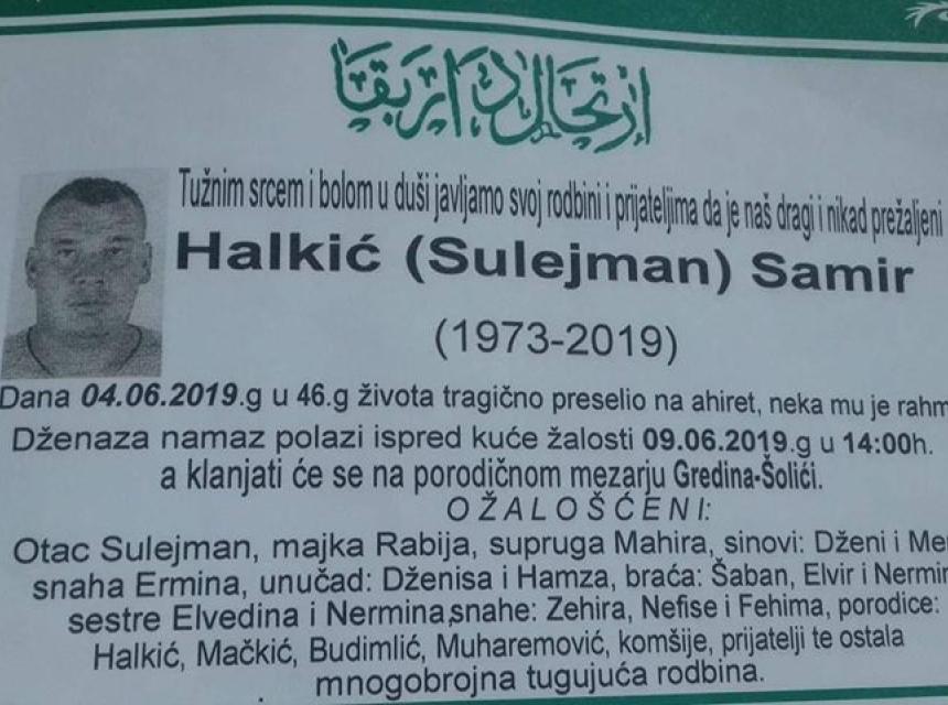 Tužnim srcem i bolom u duši javljamo rodbini i prijateljima da je naš dragi HALKIĆ (Sulejman) SAMIR dana 04.06.2019. godine u 46. godini života tragično preselio na Ahiret.