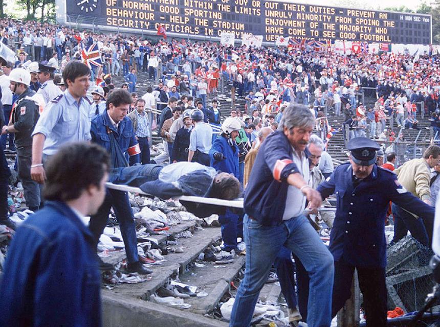 1985. Na stadionu Heysel u Bruxellesu, u neredima pred finalni meč evropskog Kupa šampiona italijanskog prvaka Juventusa i engleskog Liverpoola, poginulo 39, a povrijeđeno više od 400 ljudi, uglavnom italijanskih navijača.