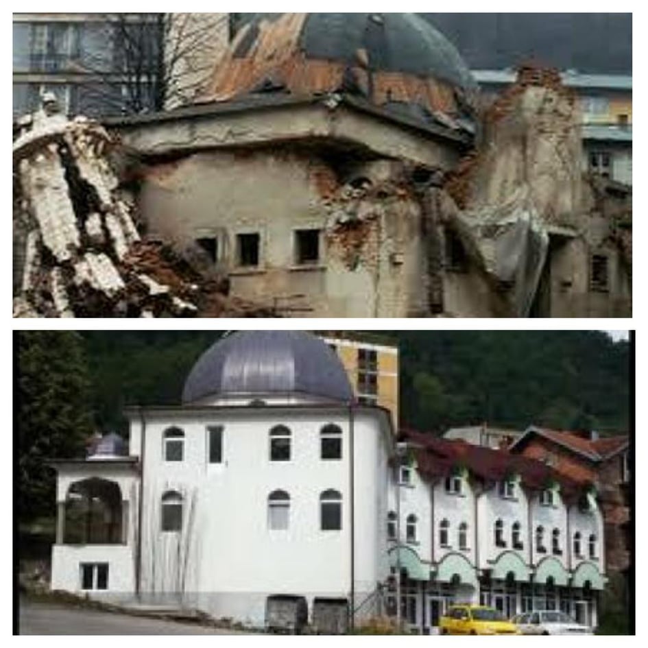Ovu džamiju je srpska vojska, predvođena zločincem Ratkom Mladićem, 16. jula 1995. godine do temelja porušila.
