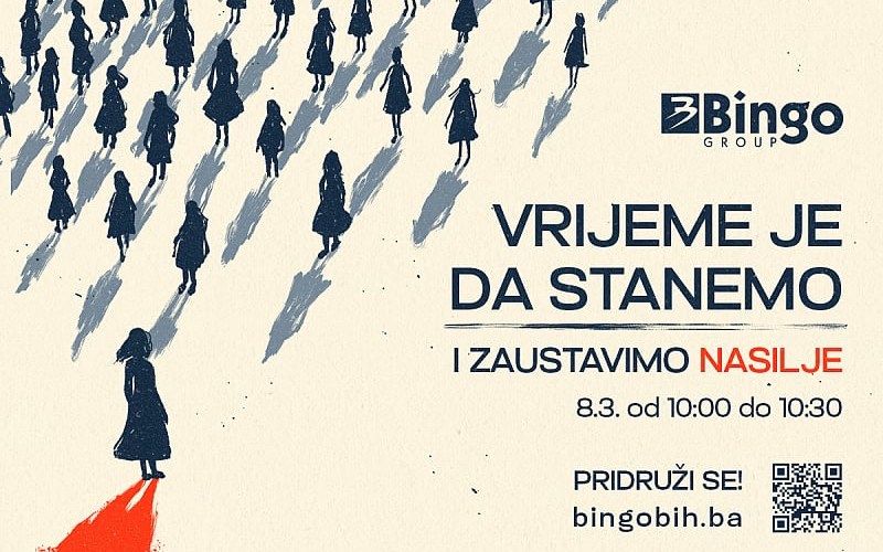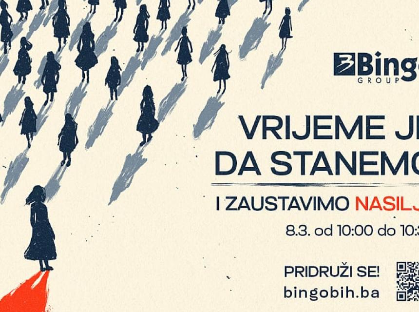 Bingo Group je kao društveno odgovorna kompanija odlučila stati u zaštitu žena i na Međunarodni dan žena, 8. marta, poslati snažnu poruku kako bi se zaustavilo nasilje.