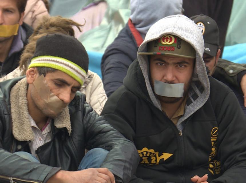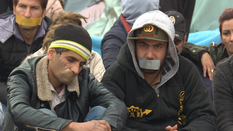 Budući da institucije vlasti u Velikoj Kladuši još nisu riješile pitanje kvalitetnog i trajnog smještaja, migranti su u znak protesta što ovdje provode dane i besane noći sjeli na tlo udaljeni nekoliko metara od graničnih policajaca sa samoljepljivim trakama na ustima.