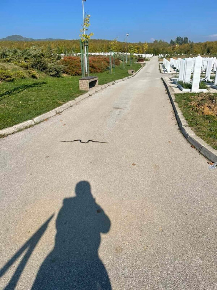 Na Gradskom groblju Vlakovo danas su zabilježene nesvakidašnje scene. Kako nam javljaju čitaoci, zmija je uočena kako gmiže između mezarja.