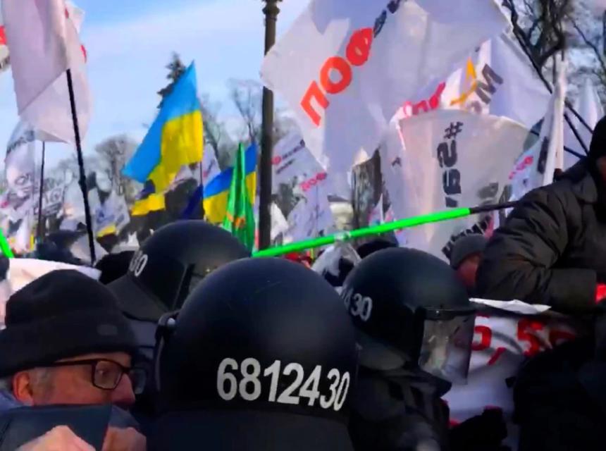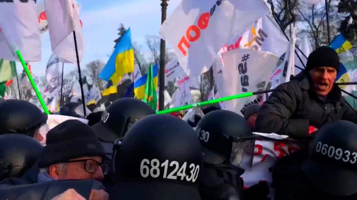 Demonstranti su organizovali protestnu šetnju kroz centar Kijeva i uzvikivali "Slava Ukrajini", a nosili su tranparente na kojima piše "Ukrajinci će se oduprijeti" i "Napadač mora umrijeti", prenosi Reuters.