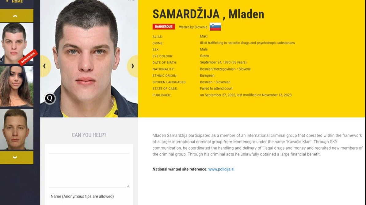 Inače, on se već duže vrijeme nalazi u bjekstvu od slovenačkog pravosuđa budući da je za njim raspisana potjernica zbog umiješanosti u organizovani kriminal.