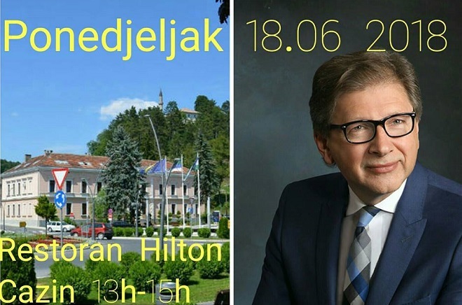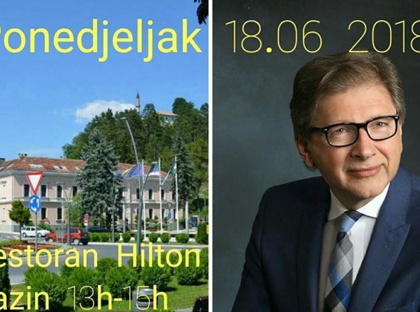 Prof. dr. Mirsad Hadžikadić, kandidat za člana Predsjedništva Bosne i Hercegovine na predstojećim izborima, predstaviti će se u ponedjeljak, 18. juna 2018. godine u periodu od 13:00 do 15:00 sati u CAZINU, u restoranu „Hilton“.