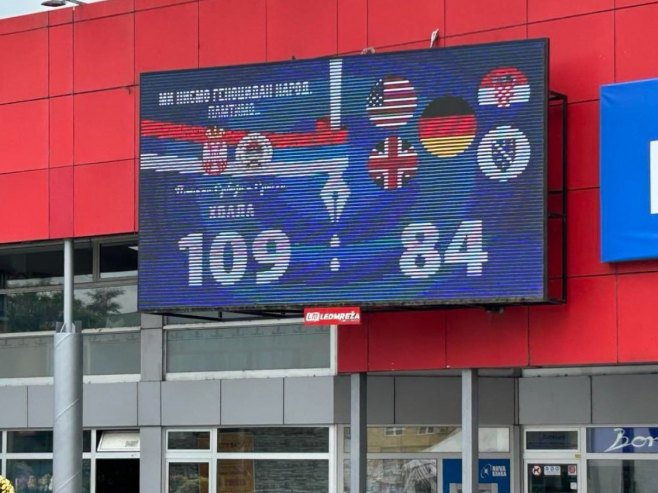Preko 100 led-panela na kojima stoji rezultat 109:84 postavljeni su širom Republike Srpske.