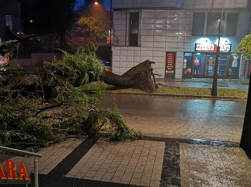 Strašno nevrijeme praćeno gradom večeras je pogodilo Cazin. U centru grada, ispred trgovačkog centra Ljiljan, na cestu je palo drvo, koje je blokiralo kompletan saobraćaj u ulici ispred ovog trgovačkog centra.