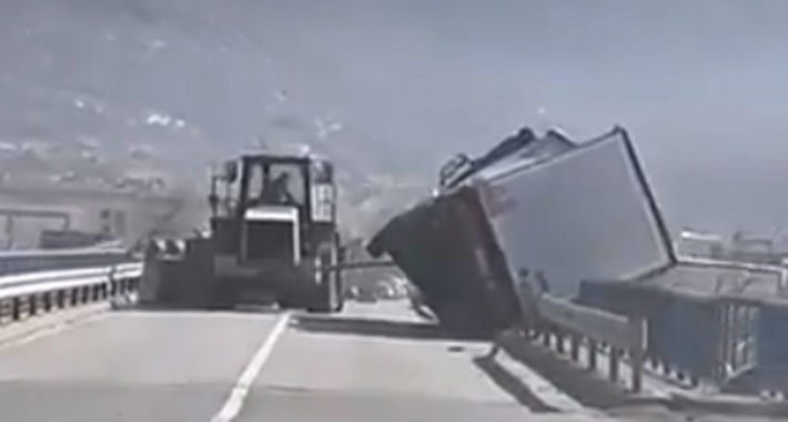Prema informacijama sa lica mjesta nekoliko kamiona se od jutros prevrnulo na ovom mostu, prenosi Bljesak.