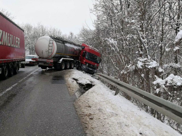 Cisterna novosadskih registarskih oznaka sletjela je u subotu s ceste na magistralnom putu Bijeljina – Brčko, u naselju Čađavica, nakon sudara s vozilom Caddy.