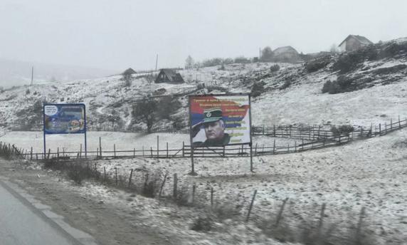 Plakat je postavljen na putu iz pravca Rudog prema Sarajevu.