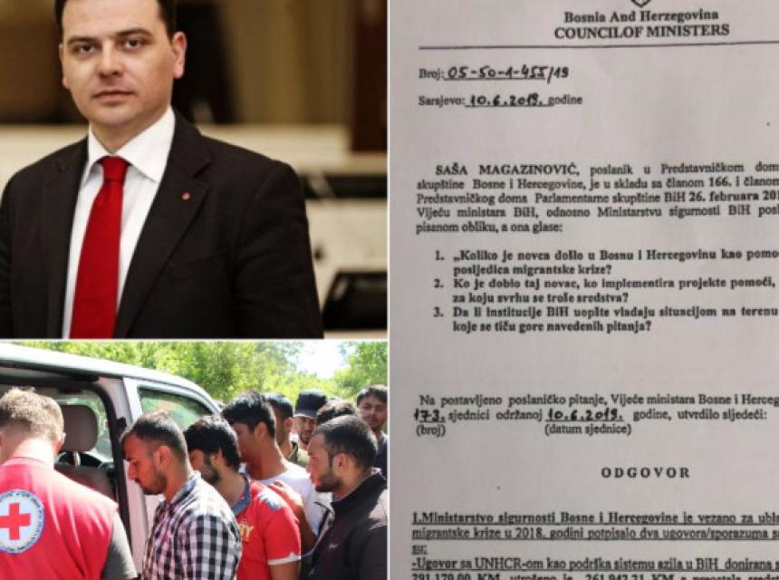 - Nakon godinu i nebrojeno puta ponovljenim pitanjima Vijeću ministara, dobio sam odgovor o novcu koji je ušao u BiH za saniranje migrantske krize. Naravno, ostaje pitanje kako je ovaj novac utrošen, ali barem znamo koliko smo dobili. No bit će još pitanja - napisao je Magazinović na Facebooku.