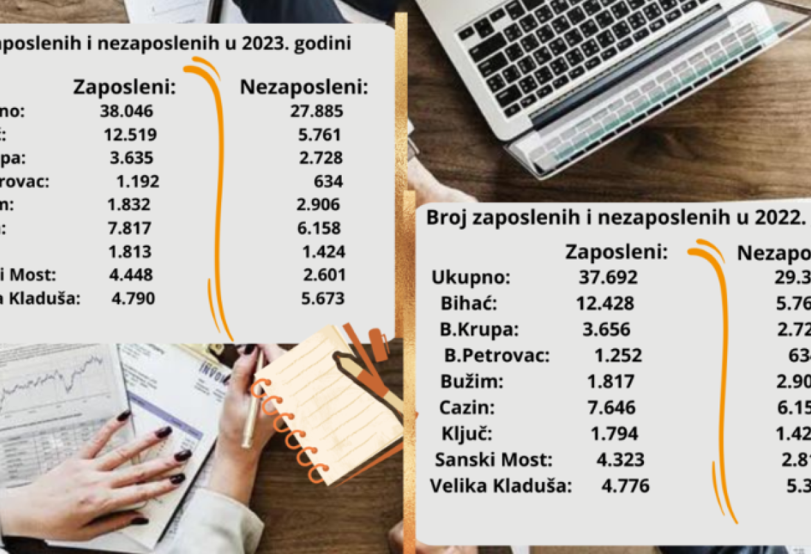 Na kraju 2022. na području USK bilo je 37.692 zaposlena, a broj nezaposlenih u istom periodu bio je 29. 324.