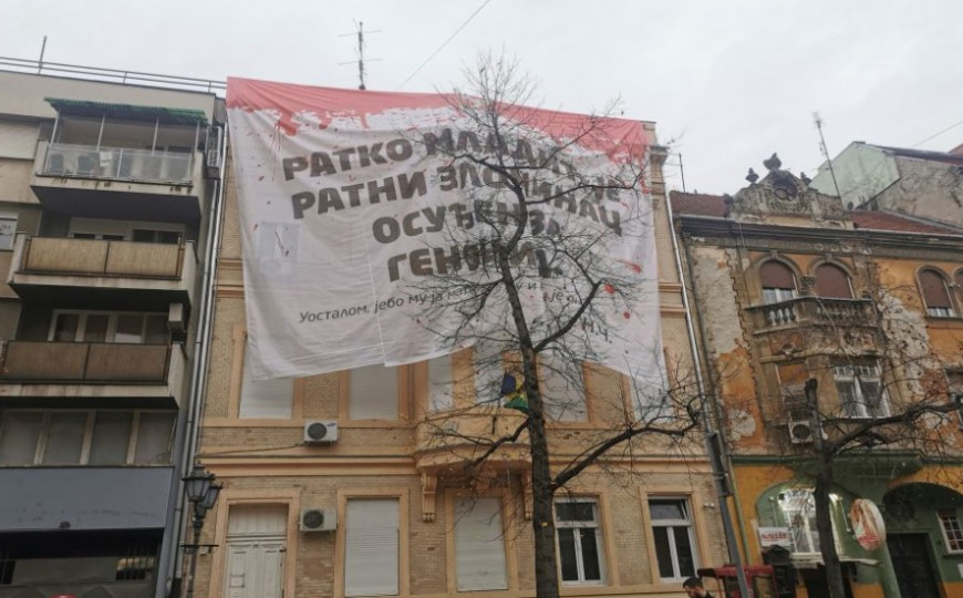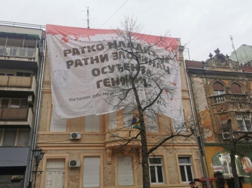 Na zgradi u centru Novog Sada u kojoj je sjedište Lige socijaldemokrata Vojvodine (LSV) jutros je osvanuo transparent na kojem piše „Ratko Mladić je ratni zločinac osuđen za genocid“.