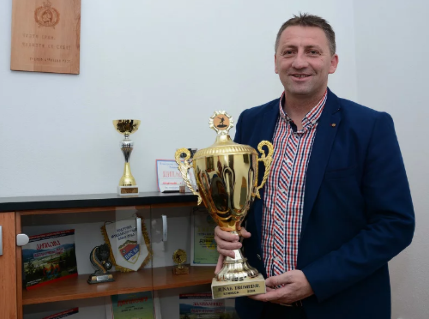 U početku nam nije bilo jasno, ali kada smo tog kišnog novembarskog dana ušli u načelnički kabinet, shvatili smo u čemu je stvar. Na mjestima gdje drugi načelnici ističu nacionalna, stranačka i političku obilježja, ovaj pozitivni i vedri čovjek ima sportske trofeje i fudbalsku ikonografiju.
