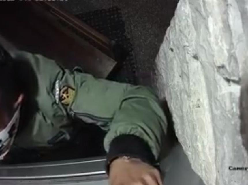 Prema snimku, migrant je pokušao prvo uništiti nadzornu kameru, a nakon toga i provaliti u objekt kroz prozor iznad vrata.
