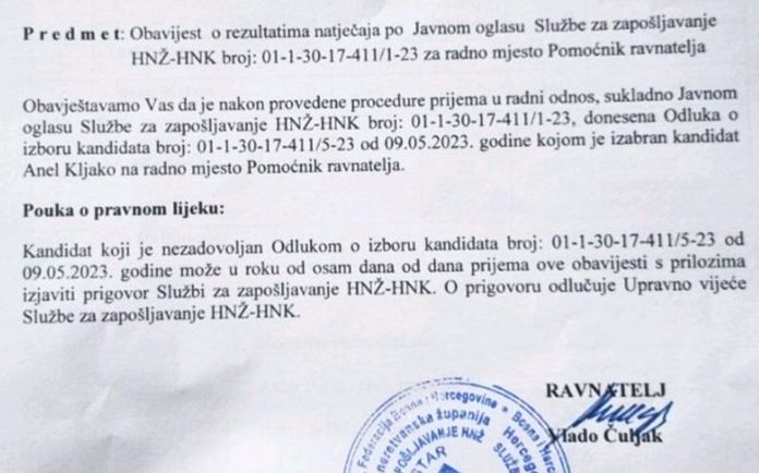Anel Kljako, nekadašnji član SBB-a, koji je zbog dokazanih izbornih krađa na posljednjim lokalnim izborima u Mostaru, ekspresno, izbačen iz te stranke, osim što je vijećnik u Gradskom vijeću Mostara, već više od godinu se nalazi na poziciji pomoćnika direktora Službe za zapošljavanje Hercegovačko-neretvanskog kantona!