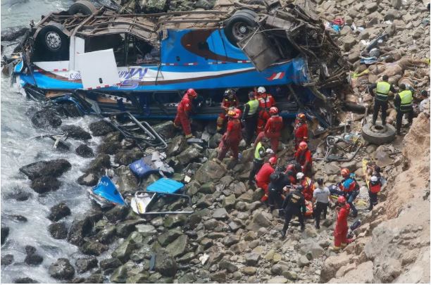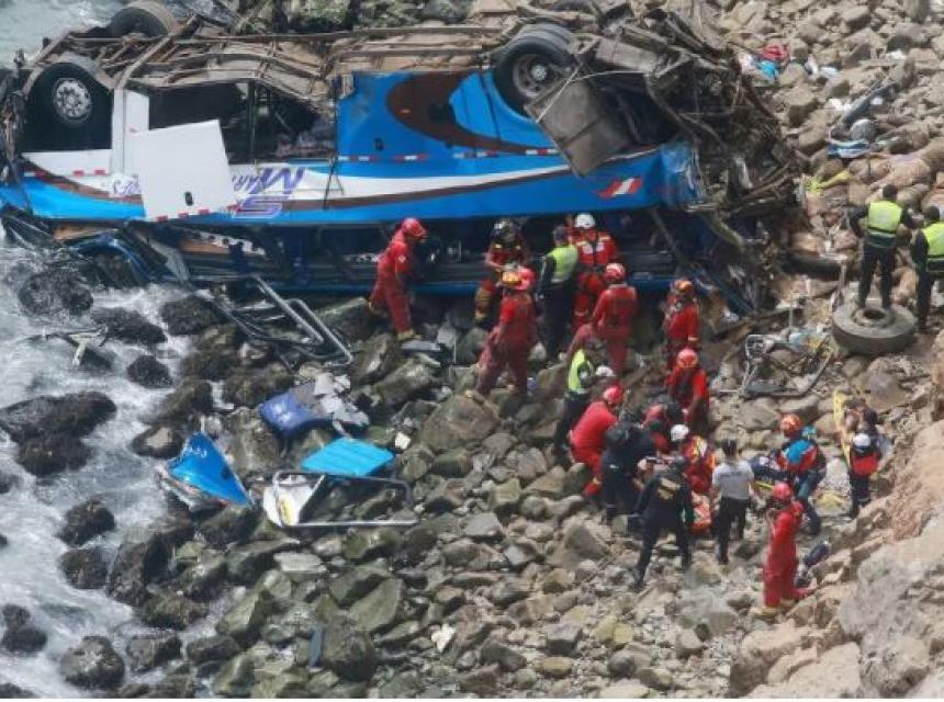Iz lokalne policije su saopćili da su tijela stradalih pornađena u autobusu, u Tihom okeanu i na plaži. Šest osoba je povrijeđeno i hospitalizirano. Do nesreće je došlo kada se autobus sudario s traktorskom prikolicom, a potom s kamionom objavila je državna televizija Andina.