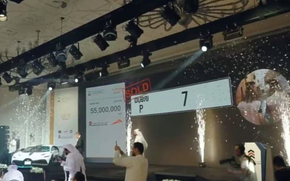 Tablica na kojoj piše samo "P7" je srušila prethodni rekord koji je pripadao Saeedu Abdulu Ghaffaru Khouriju koji je kupio registarsku tablicu za 52,2 miliona dirhama (14,2 miliona dolara) u februaru 2008. na aukciji koju je organizovala ista kompanija.