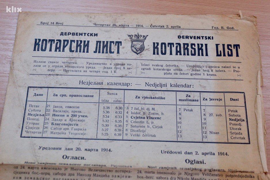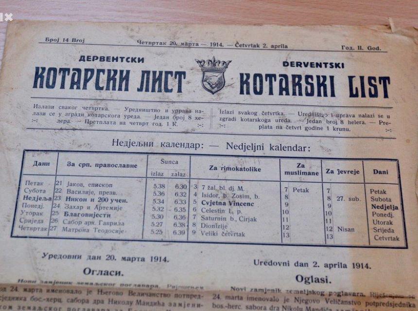 "Prvi broj koji je izašao zvao se Derventski kotarski list i urednik je bio Ivan Radošević. Prva dva broja su štampana u Rijeci, a onda je otvorena Lajeva štamparija u Derventi. Novine su i počele s radom zbog štamparije. List je izlazio sve do 1918. godine, a najstarije izdanje koje imamo je iz 1913. godine. Nakon završetka Prvog svjetskog rata nije izlazio u tom obliku, ali su na drugim novinama radili isti ljudi. Pojavile su se radikalne novine Bosanac, zatim Naša smotra i list Burgija koji se bavio satirom, a koji je izašao samo jednom. Postoje dokazi da je na području Dervente između dva svjetska rata izlazilo nekoliko novina", kazao nam je direktor JP Derventski list Čedo Vujičić.