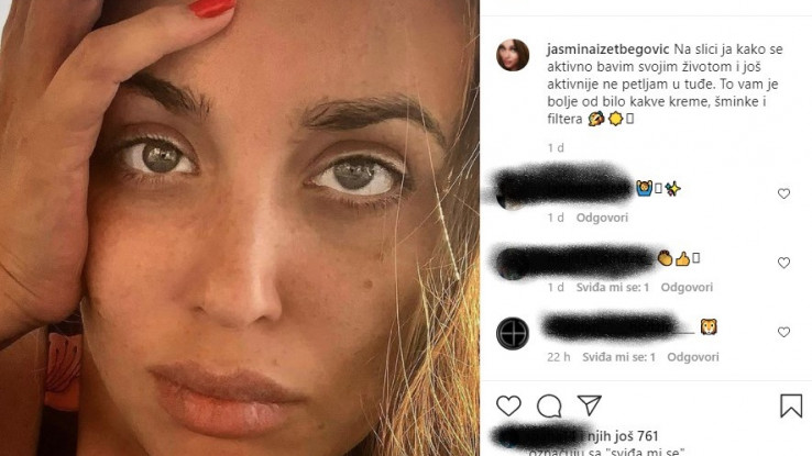 - Na slici ja kako se aktivno bavim svojim životom i još aktivnije ne petljam u tuđe. To vam je bolje od bilo kakve kreme, šminke i filtera - napisala je Jasmina.