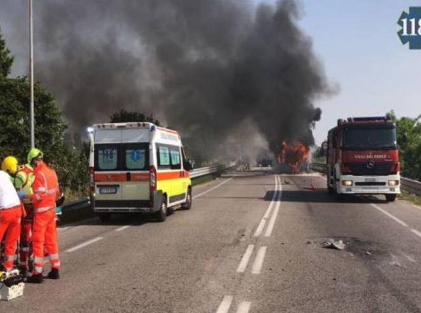 U saobraćajnoj nesreći, koja se jutros oko 9 sati i 30 minuta dogodila na dvadesetak kilometara od italijanskog ljetovališta Lido di Jesola, u potpunosti je izgorio autobus koji je prevozio grupu maturanata Ekonomske škole. Niko od 51 maturanta, koji su bili u autobusu, nije povrijeđen, a djeca su trenutno u Lido di Jesolu gdje su im lokalne vlasti pružile pomoć i privremeno ih smjestili u prihvatilište lokalnog Crvenog krsta, gdje čekaju da dobiju privremene putne isprave.