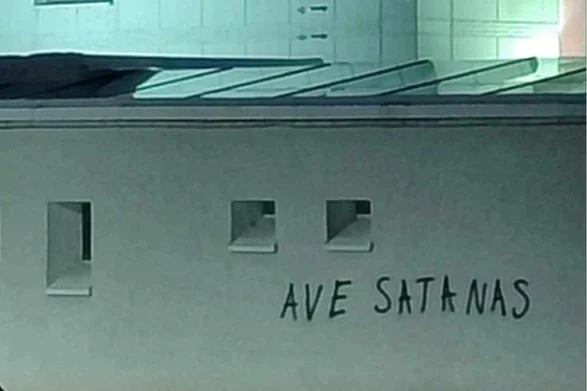 Na zidu Bijele džamije u Brčkom su nepoznate osobe ispisale "ave satanas" crnim sprejem, što bi u prijevodu značilo "pozdrav sotoni".