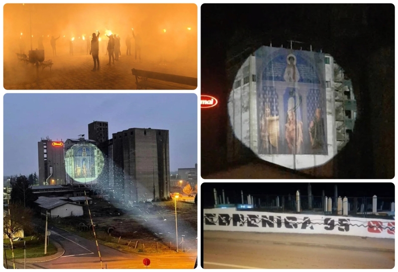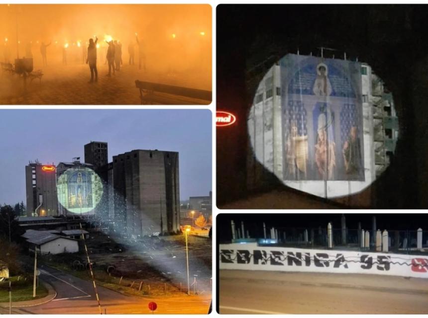 Članovi iste navijačke grupe su tokom noći sa stambene zgrade projektorom osvijetlili zgradu kompanije SCO Bimal s likom Svetog Stefana kojeg smatraju "zaštitnikom entiteta RS". Također, sinoć je u tom gradu ponovo uništen grafit posvećen žrtvama genocida u Srebrenici.