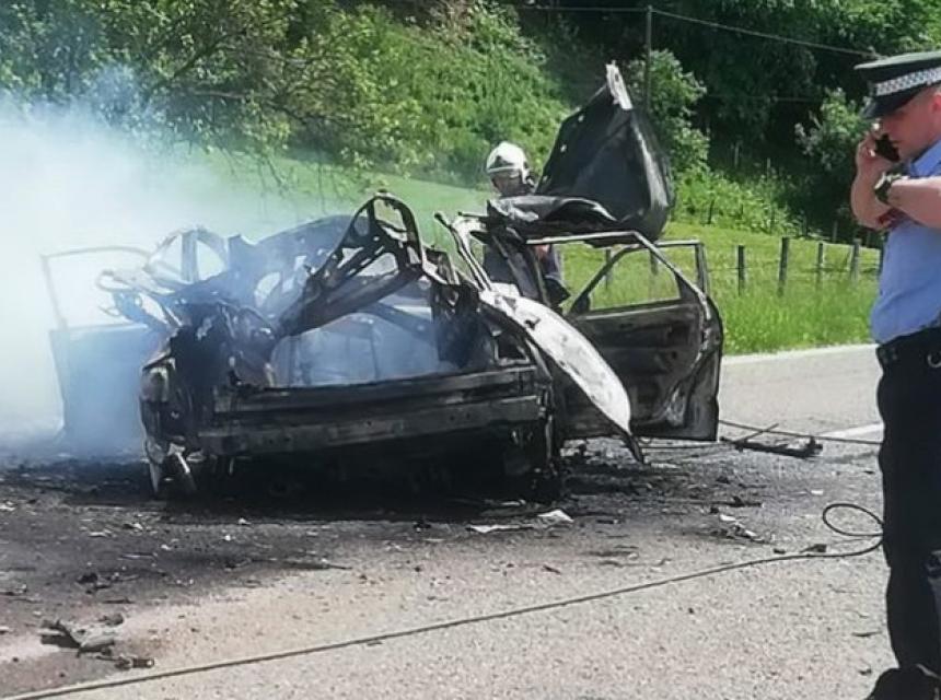 U udesu je osim vozila koje se zapalilo i ostalo na putu učestvovao i Audi koji se nakon sudara zaustavio na njivi, desetak metara dalje od mjesta nesreće.