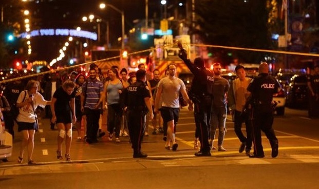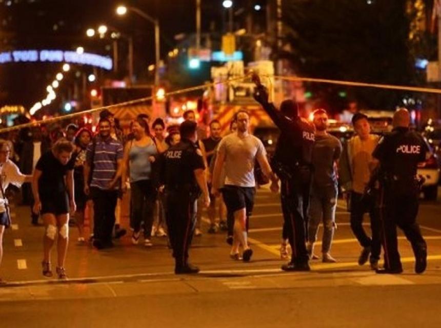 Jedna od žrtava je djevojka, dok je među ranjenim teške povrede zadobila djevojčica koja ima osam ili devet godina. Napad se dogodio u distriktu Greektown u Torontu, a izveo ga je dvadesetdevetogodišnji muškarac koji je razmijenio vatru s policijom. Nakon toga je pronađen mrtav u blizini mjesta događaja. Njegov motiv je zasad nepoznat, a policija još uvijek nije objavila identitet napadača.