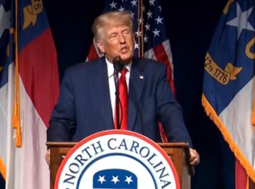 Predsjednik Republikanske stranke Sjeverne Karoline Michael Whatley predstavio je Trumpa kao "našeg predsjednika", složivši se s neutemeljenim tvrdnjama bivšeg predsjednika da su mu izbori 2020. ukradeni prevarom birača, što je Trump nazvao "zločinom stoljeća".