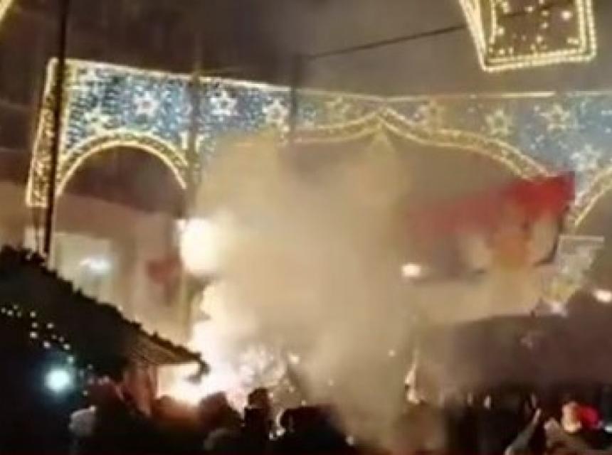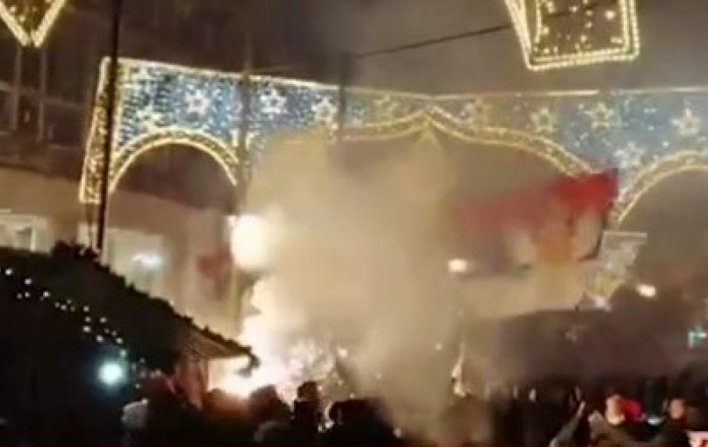 U jednom trenutku neko od okupljenih upalio je vatromet kojim je zapaljena zastava Crne Gore koja se nalazila na ambasadi.