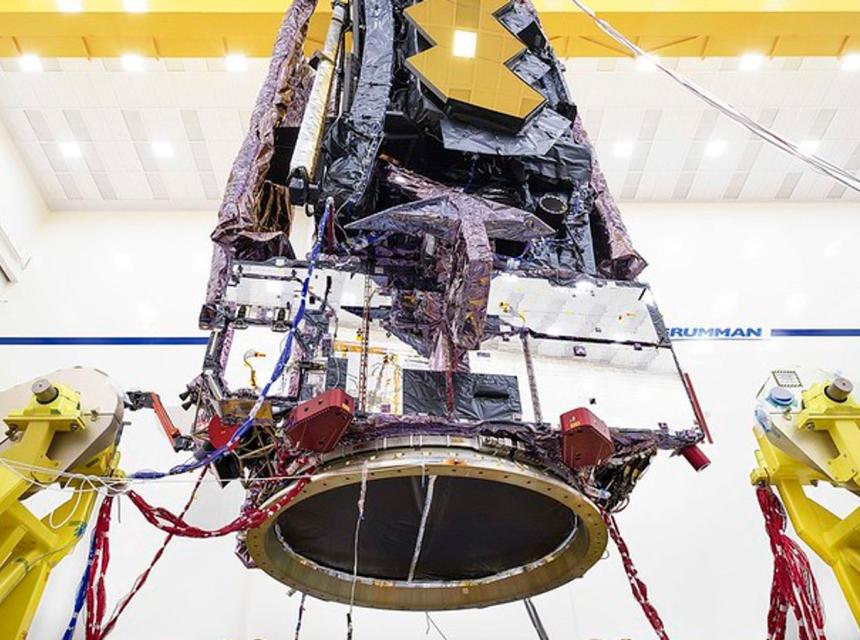 „Tehničari su se pripremali da prikače Webb na adapter za lansirnu raketu, koji se koristi za integraciju opservatorije sa gornjim stepenom rakete Ariane 5.