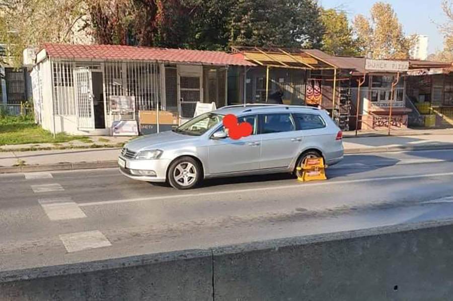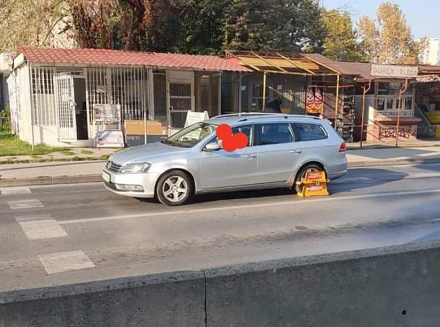 Na objavljenoj fotografiji koja je zabilježena u neposrednoj blizini Mještovite Srednje Hemijske škole u ulici Bosne Srebrene u Tuzli građanin je zabilježio nesvakidašnji prizor očigledno revoltiranog vozača koji je i pored činjenice da je točak automobila bio blokiran od strane službenika JKP “Saobraćaj i komunikacije” Tuzla i to željeznom konstrukcijom nastavio se otežano kretati saobraćajnicom.