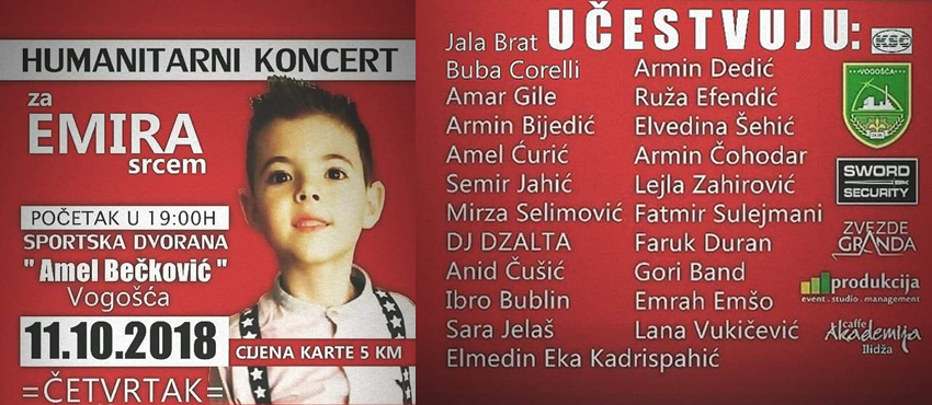 U Njemačkoj u Wasserburgu, 13. oktobra humanitarnu svirku organizira i Alen Hrbinić sa Mariom. U Beču će se 20. oktobra održati veliki koncert Enesa Begovića, Viki Miljković i Armina Bijedića, a organizator Semir Delalić je organizirao prikupljanje pomoći za devetogodišnjeg Emira.