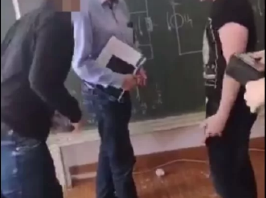 Odjednom, nastavnik pljune učenika nakon čega ovaj nasrće na njega, a snimak se prekida!