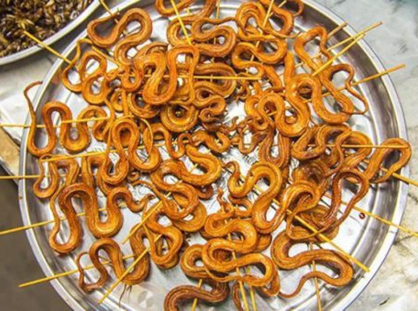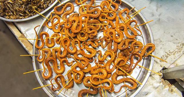 Postoje izvještaji o tome da se zmije prodaju na lokalnoj pijaci morske hrane u Wuhanu, gdje je zabilježena prva pojava koronavirusa. Postoji velika mogućnost da se virus na zmije prenio sa slijepih miševa, a zatim sa zmija na ljude.