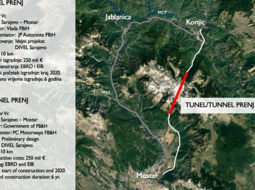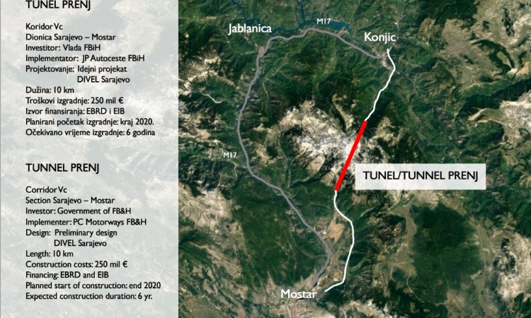 Radi se o najzahtjevnijem objektu na autoputu Koridora Vc čija će izgradnja, kako je procjenjeno, trajati šest godina, a planirano je da počne krajem 2020. godine. Tunel Prenj u dužini deset kilometara nalazi se na dionici autoputa na Koridoru Vc Konjic - Mostar Sjever, a procijenjena vrijednost izgradnje tunela je 250 miliona eura. Investitor je Vlada Federacije BiH, a implementator projekta JP Autoceste FBiH. Izvori finansiranja su Europska banka za obnovu i razvoj (EBRD) i Evropska investicijska banka (EIB).
