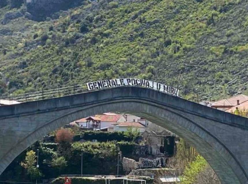 Najvatreniji navijači FK Velež - popularni Red Army, oprostili su se od Jovana Divjaka, nekadašnjeg generala Armije Republike BiH koji je preminuo u jučer u 84. godini. Tim povodom su na Stari most postavili transparent na kojem piše: