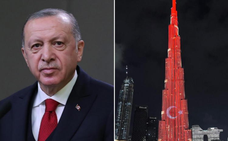 Turski ambasador u Abu Dabiju Tugaj Tuncer (Tugay) podijelio je na svom nalogu na društvenim mrežama video svjetski poznatog nebodera UAE Burj Khalifa koji je osvijetljen bojama turske zastave.