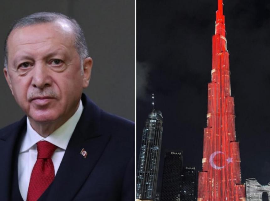 Najviši neboder i jedan od turističkih simbola Ujedinjenih Arapskih Emirata Burj Khalifa osvijetljen je bojama turske zastave i na njemu je ispisana poruka dobrodošlice uoči posjete turskog predsjednika Redžepa Tajipa Erdoana (Recep Tayyip Erdogan), javlja Anadolija.
