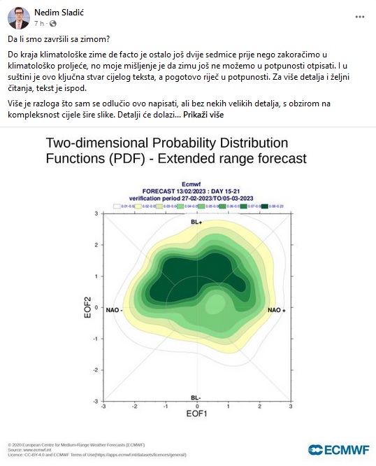 – Do kraja klimatološke zime de facto je ostalo još dvije sedmice prije nego zakoračimo u klimatološko proljeće, no moje mišljenje je da zimu još ne možemo u potpunosti otpisati. I u suštini je ovo ključna stvar cijelog teksta, a pogotovo riječ u potpunosti. Za više detalja i željni čitanja, tekst je ispod.