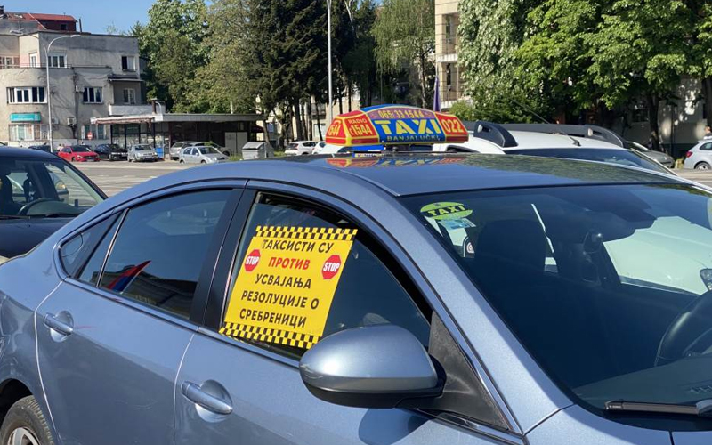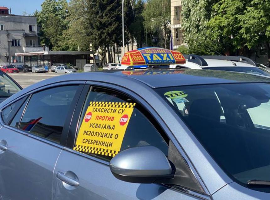 Na automobilima nose natpis “Taksisti su protiv usvajanja rezolucije o Srebrenici”.