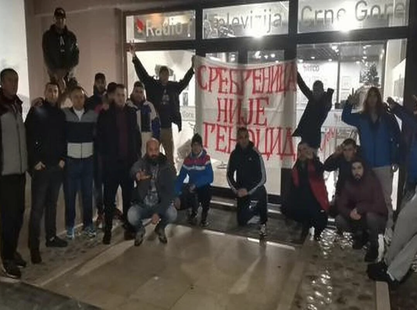 Prema pisanju crnogorskih medija, protest su organizovali NVO "Zavjetnici Tvrdoš Nikšić" i NVO "Stupovi". Okupljeni su rekli kako "Aida" ne doprinosi rasvjetljavanju činjenica te su ispred zgrade RTCG razvili transparent na kojem piše "Srebrenica nije genocid". Ako je suditi po fotografijama objavljenim u medijima, na protestu se okupilo oko 20 ljudi.